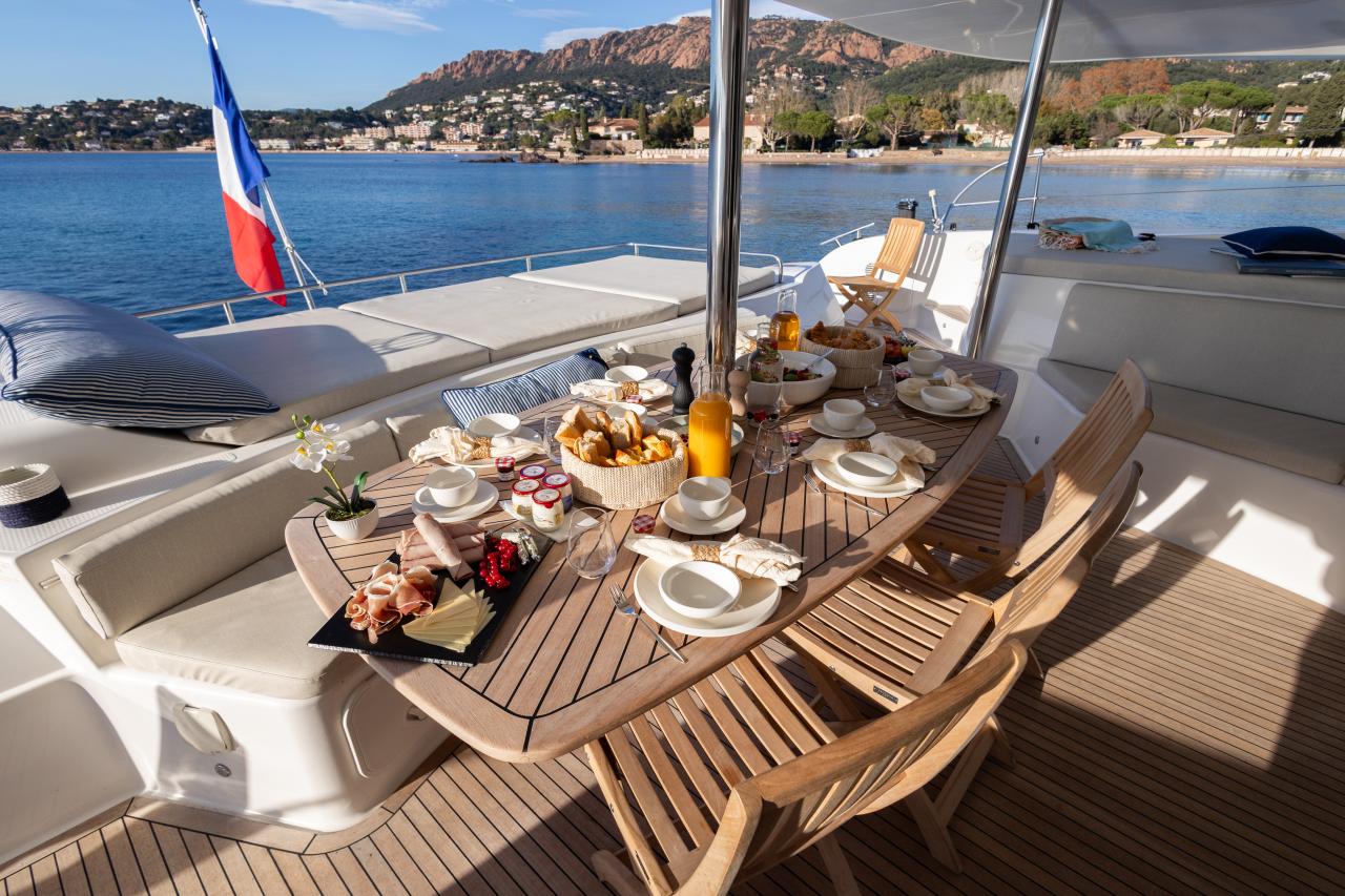- Restauration et boissons alcoolisées : nous pouvons organiser un service traiteur à bord ou la livraison de plats et boissons à la demande.